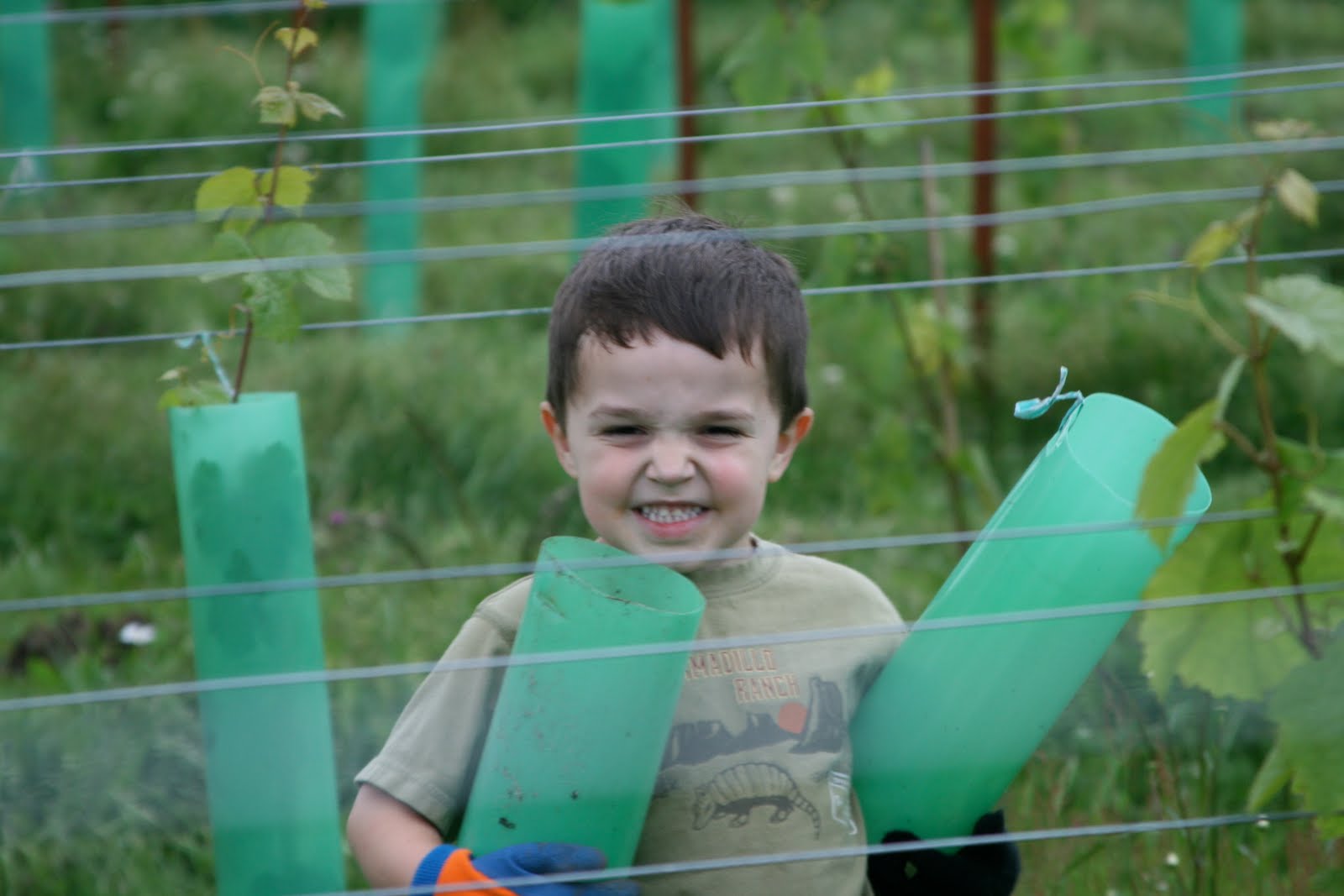 This year the kids and I decided the best gift for daddy would be all of us working hard as family in the vineyard.