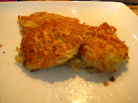 4. Heat oil in skillet and drop small piles of mixture into skillet. Press the potato piles flat with the spatula.