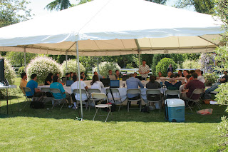 Monday we opened our home to Isaac’s 38 managers and a few other significant people in the Division. We rented a tent for our back yard and set up tables chairs and a TV for PowerPoint and WAH LAH!