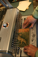 Today the kids and I went to my friend Shawn’s home to see how she makes the journals she sells for her business “Sparrow Tracks.” She finds old and worn books and recycles them into journals and sells them here. I have bought journals from Shawn a couple of times for myself and as gifts. The average price is $16 without shipping, but if you are local you may find them in a couple of coffee shops around town.