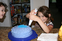 Kelsey made daddy a cake all by herself, Austin made the frosting (Mmmm!), then they both decorated it! The kids dressed up so silly for daddy as they waited anxiously by the door! Then time for cake, a serenade by Kelsey on the piano, wrestle and cuddle time for Austin & Megan! (Drew was sleeping)