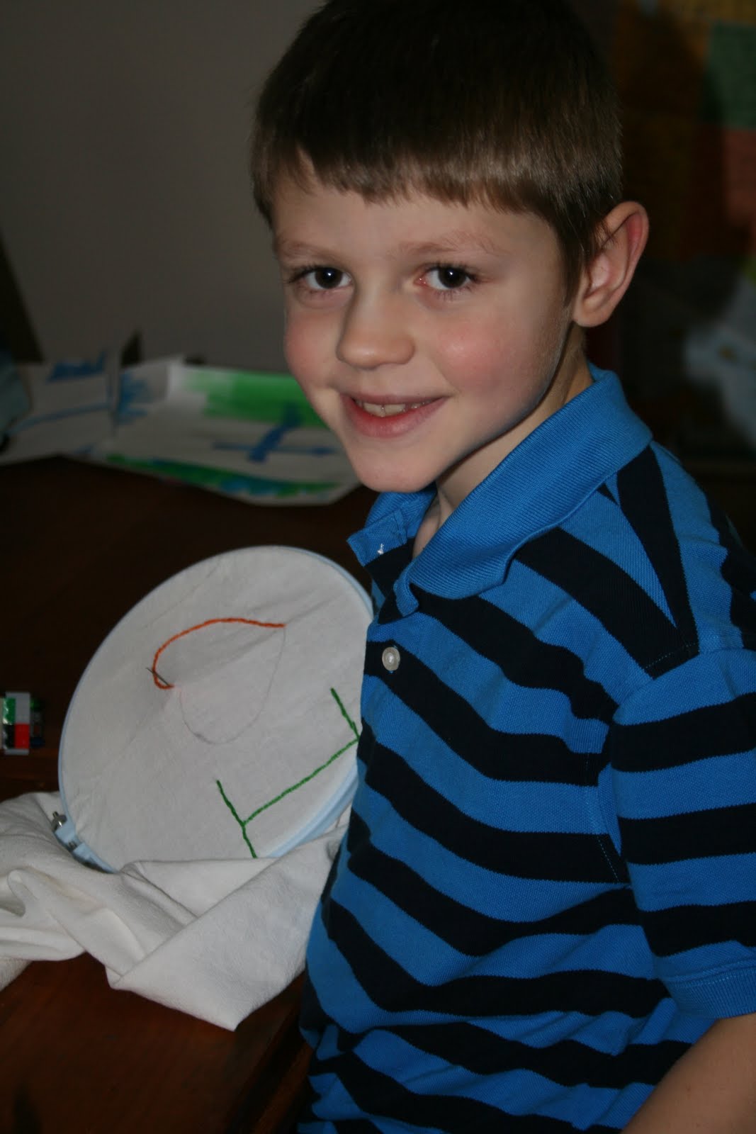 The big kids embroidered towels! Yep even boys need to know how to sew!